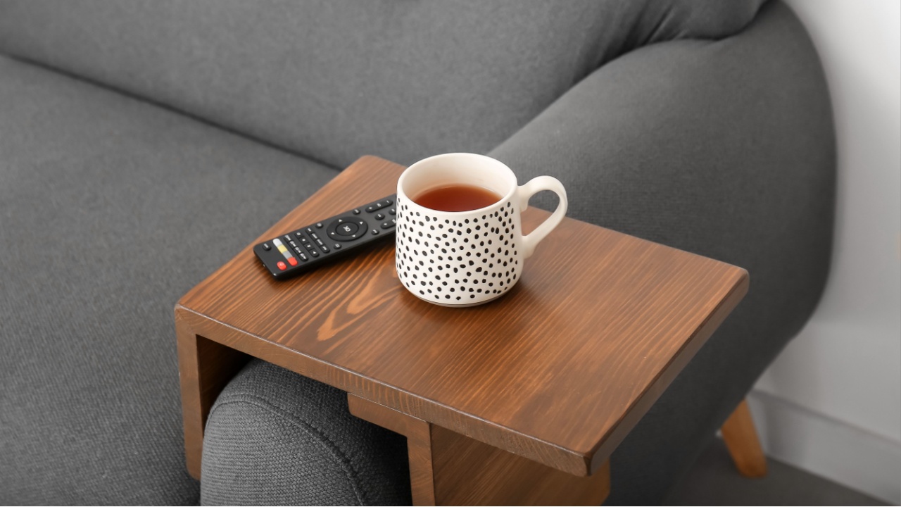If you’ve ever been relegated to the corner seat on the couch that is the furthest from the coffee table, you haven’t been completely forgotten. With a sofa tray table that fits securely on the arm of your sofa or chair, everyone has a place to put their drink!